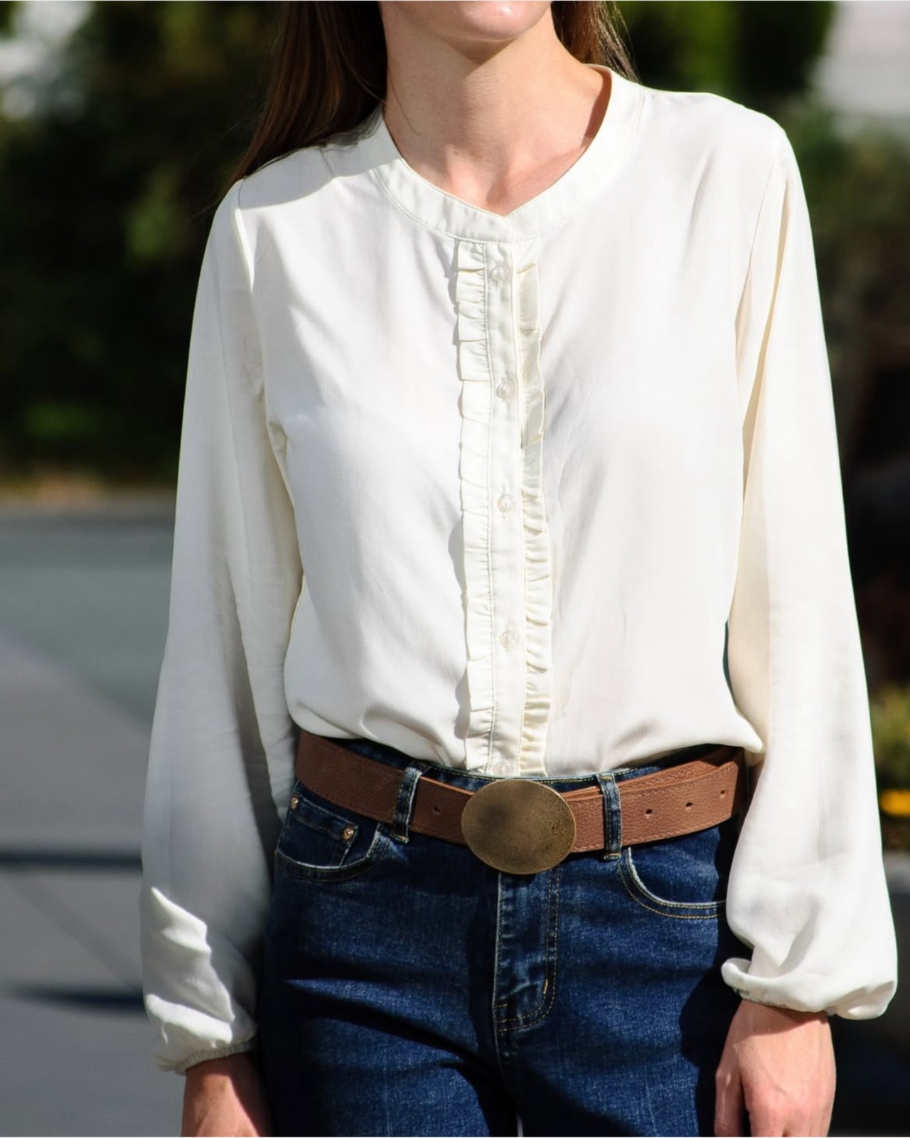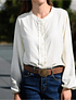 Blusa Charlotte, confeccionada en tela viscosa algodón, muy suave al tacto y excelente caída. Su delantero posee cruce de 3 cm. con vuelos y 6 botones a tono, además de tener de cuello mao. Sus puños cuentan con elástico de 0,5 cm para mayor ajuste y comodidad.